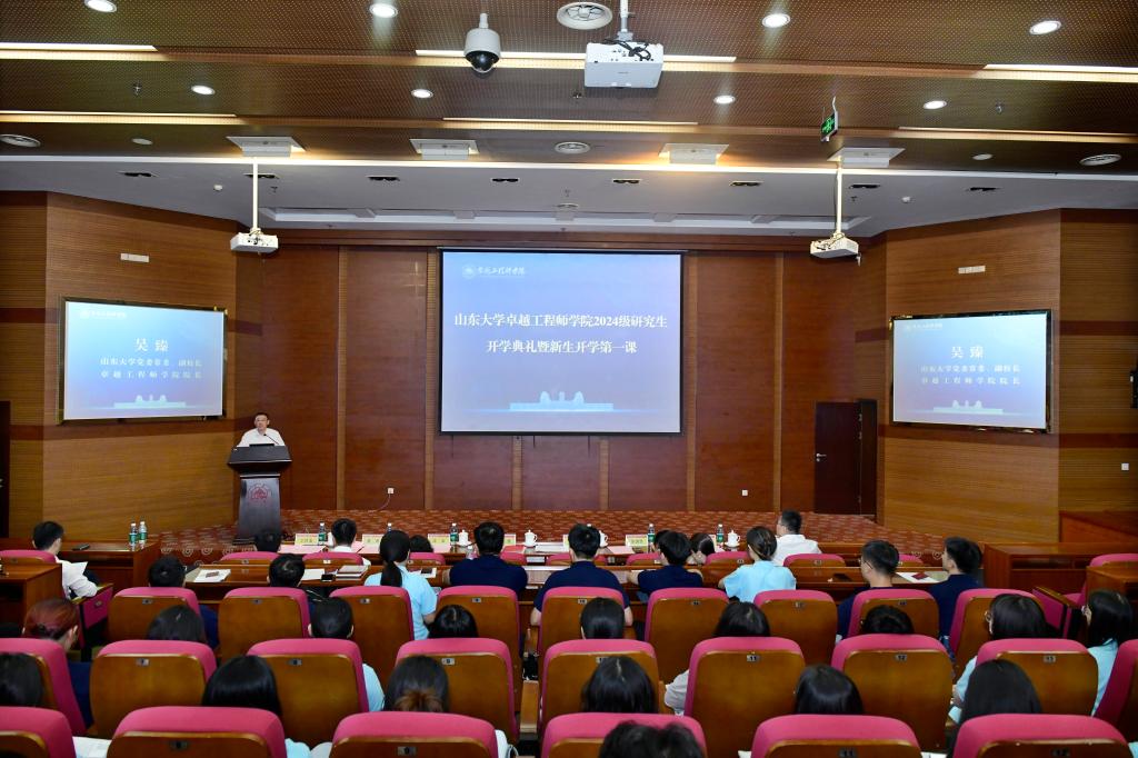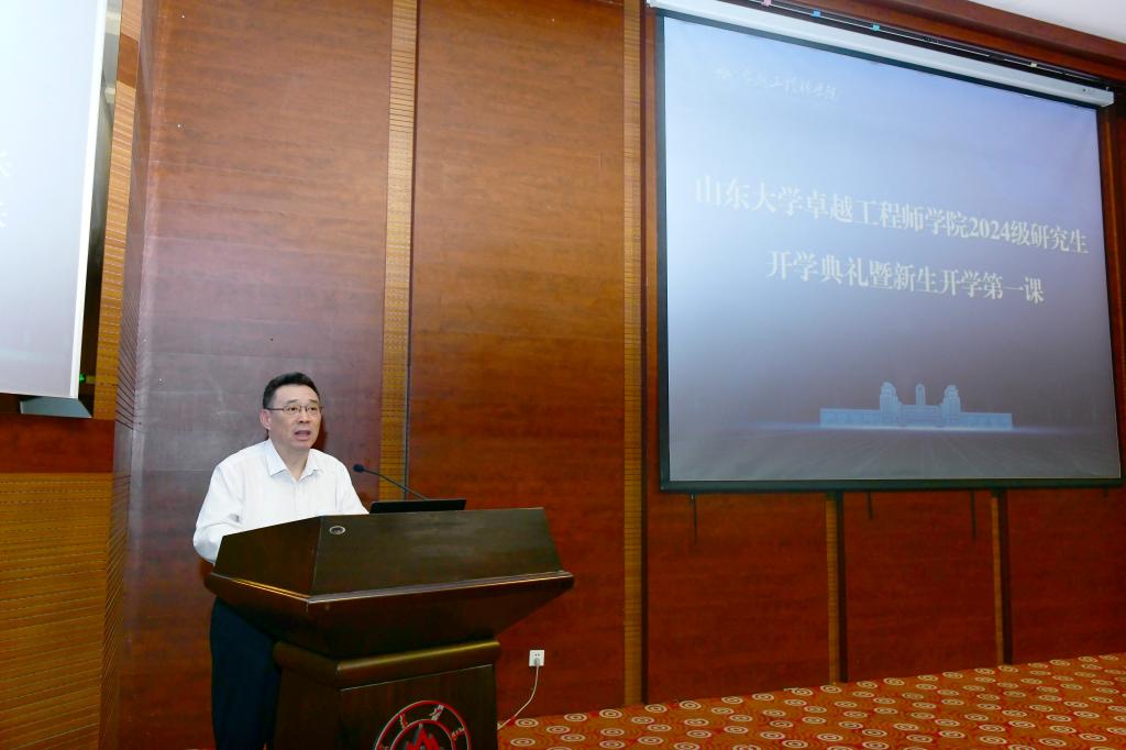 随后,吴臻为新生讲授了题为《心怀“国之大者”,努力成为担当民族复兴大任的卓越工程师》的“开学第一课”。他带领新生纵览山大的悠久历史和团队建设、平台建设、人才队伍建设成就,站在全球视野与理论高度阐明了我国卓越工程师培养面临的挑战,深度解析了XC体育卓越工程师培养的特色与成效。他提出,爱党报国、敬业奉献是卓越工程人才必须具备的品格素质,具有突出技术创新能力、善于解决复杂工程问题是卓越工程师能力培养核心要求。XC体育卓越工程师公司积极推进工程硕博士培养改革工作,在探索有组织育人中形成了党建引领、项目牵引、工学交替、分类评价、国际交流五大培养特色,形成了具有山大特色卓越工程师培养新模式。最后,他希望每一位同学都能“把论文写在祖国大地上”,立志科研报国,善于提出问题,注重交叉融合,坚持久久为功,努力成长为党和国家所需要的工程科技领军人才,为中国式现代化建设奉献青春的智慧和力量。