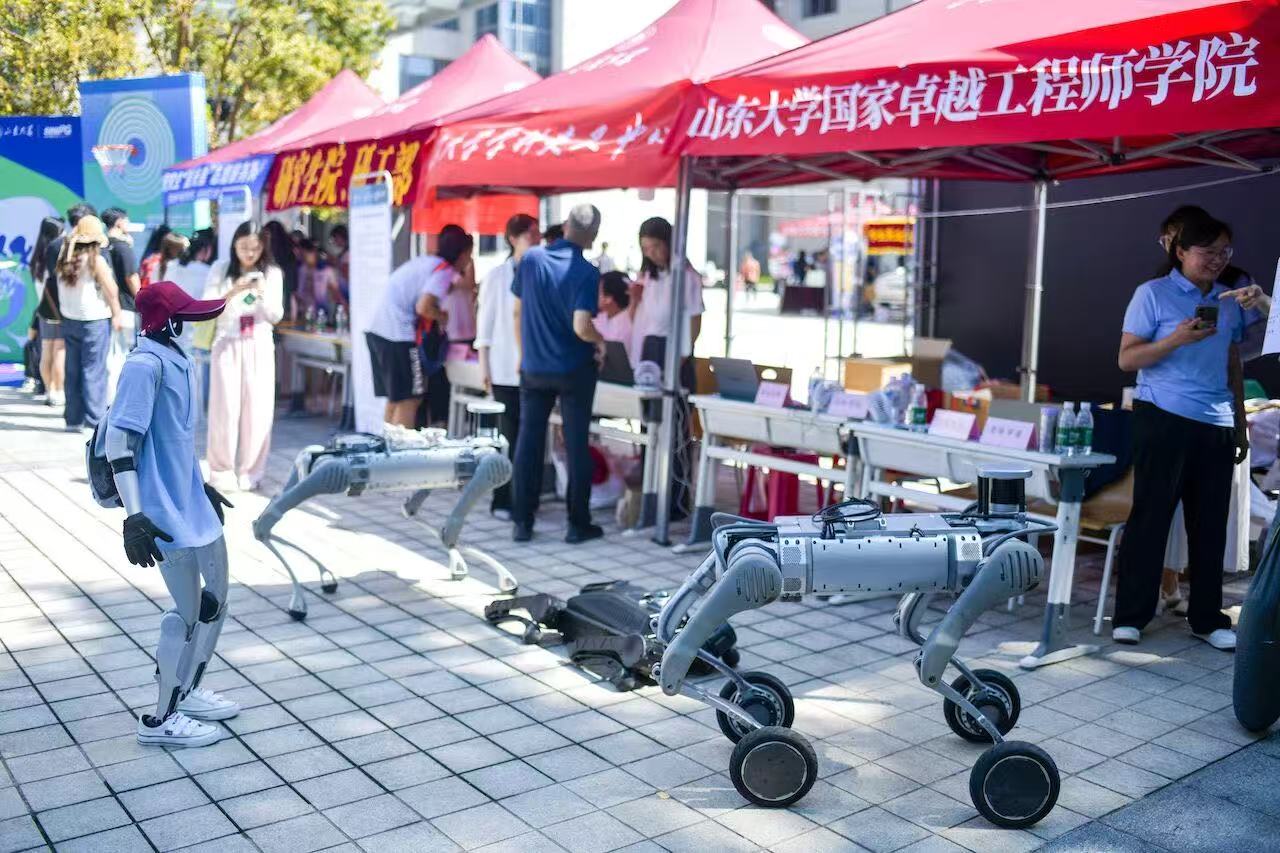 今年的迎新现场,一位特殊的“志愿者”——四足机器人,吸引了众多目光。