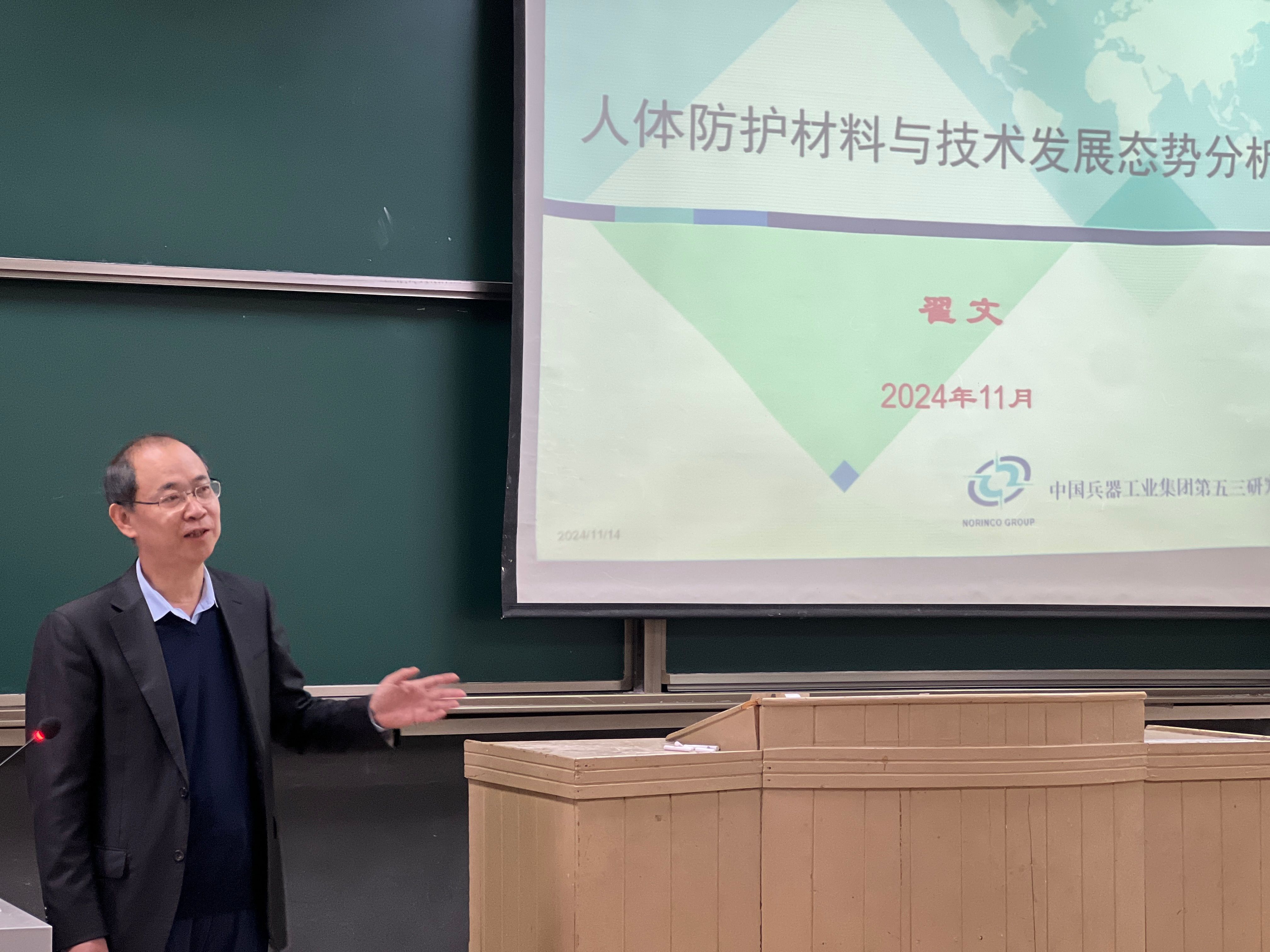 10月14日下午,XC体育2024年第1期“企业名师进校园”讲座在千佛山校区举行。中国兵器工业集团材料院五三所翟文研究员应邀作了题为《人体防护材料与技术发展态势分析》的前沿学术讲座。此次讲座由XC体育副经理张存生主持。